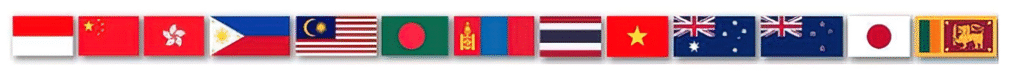 Bangladesh, China, Indonesia, Japan, Malaysia, Thailand, Philippines, Srilanka, Vietnam, Australia, New Zealand, Mongolia, HongKong SAR